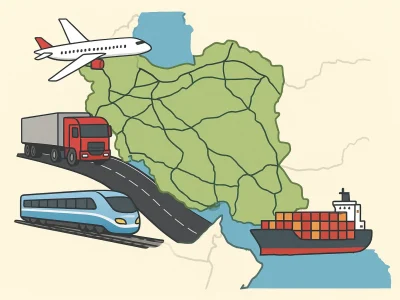 ایران با داشتن شبکه گسترده ای از جاده ها، خطوط ریلی، فرودگاه ها و بنادر، یکی از کشورهای کلیدی منطقه برای بهترین مسیرهای حمل و نقل محسوب می شود.